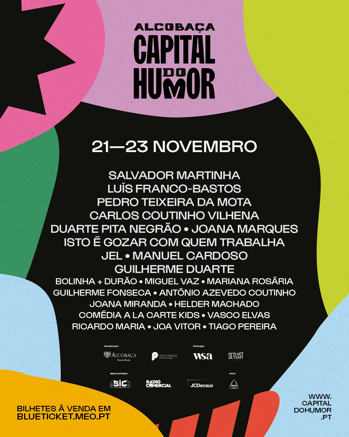 O cartaz do festival junta nomes consagrados do humor nacional e novas vozes em ascensão. Entre os artistas confirmados estão Salvador Martinha, Luís Franco-Bastos, Pedro Teixeira da Mota, Carlos Coutinho Vilhena, Joana Marques e Ricardo Araújo Pereira.