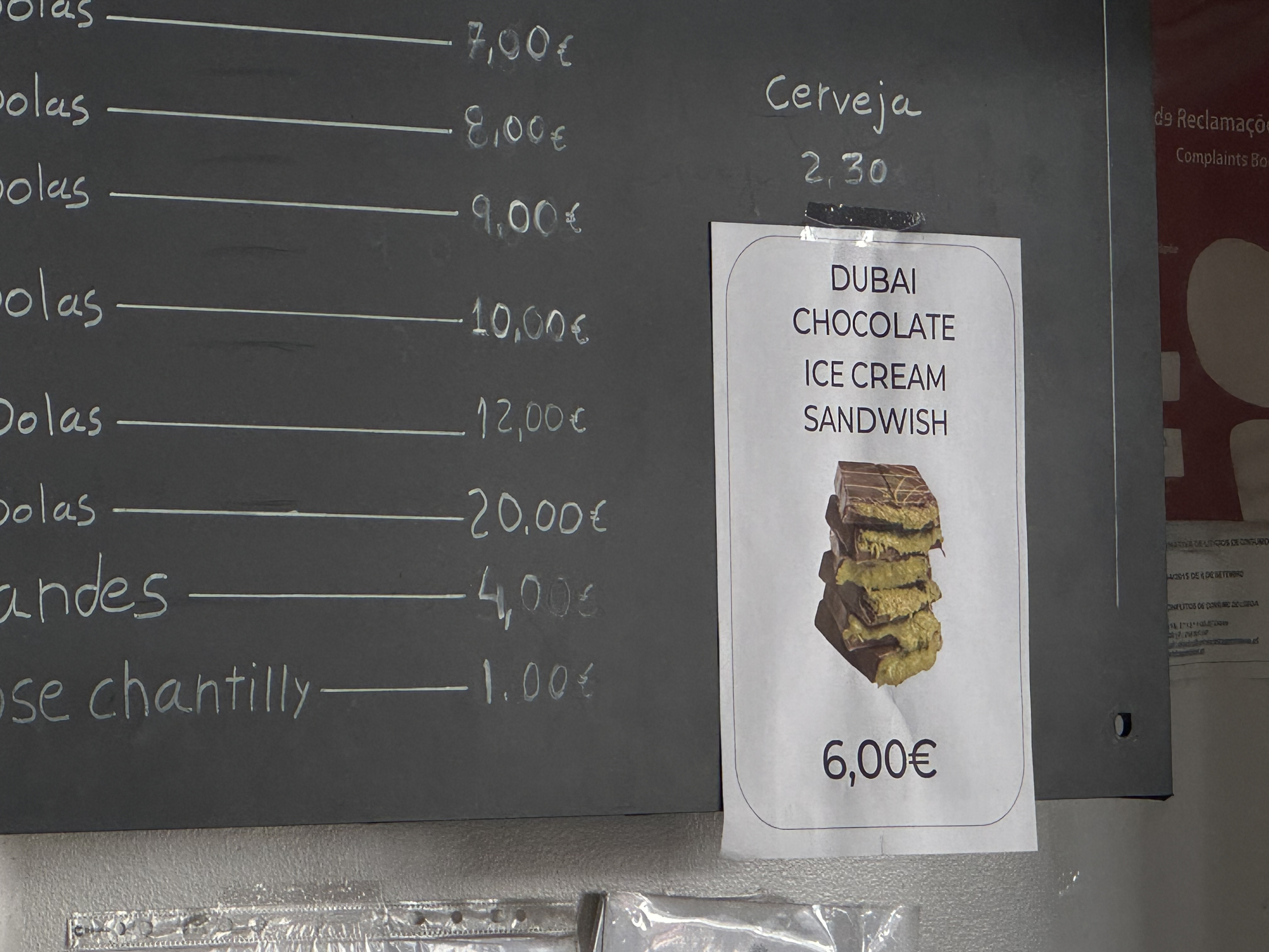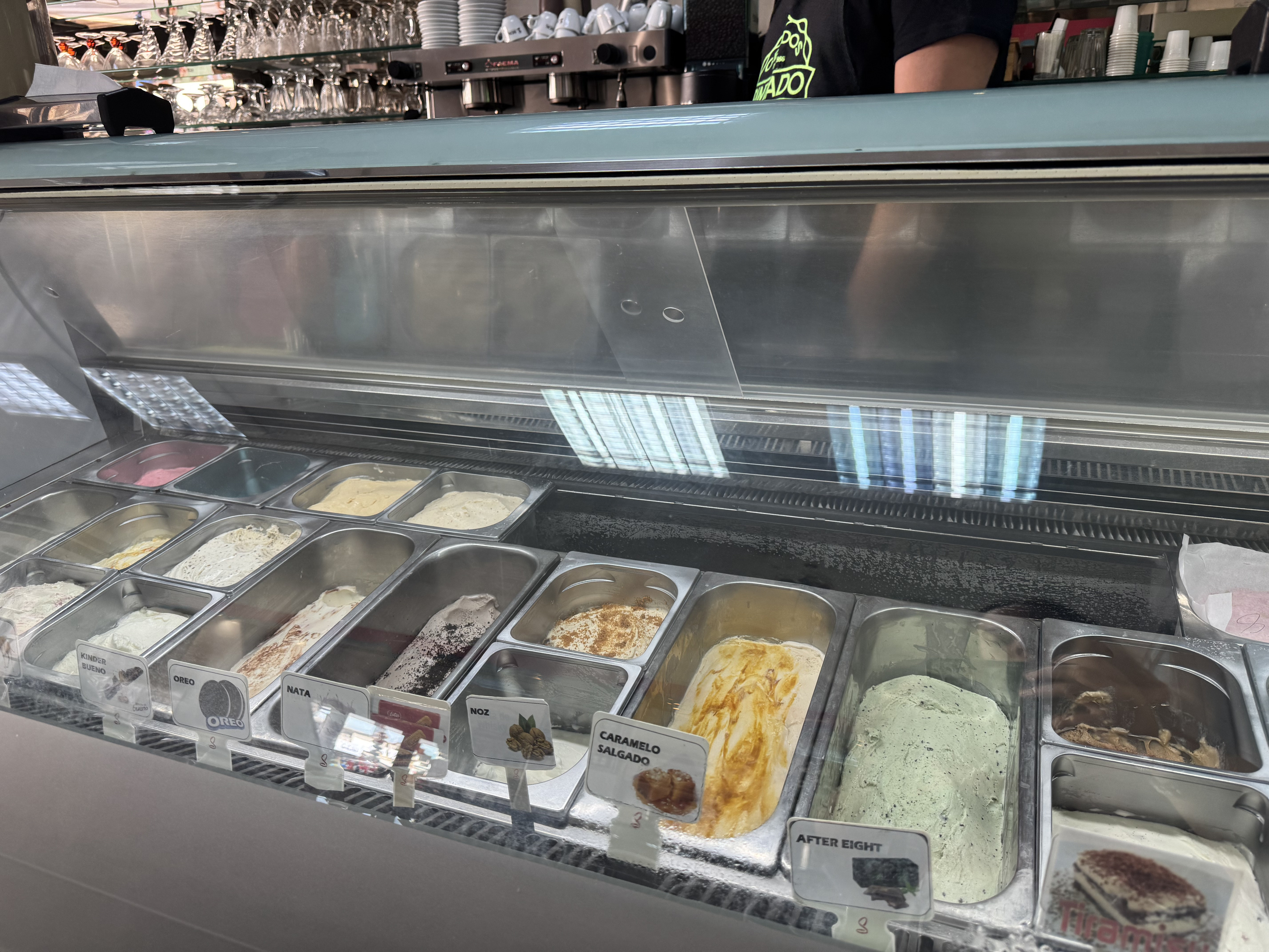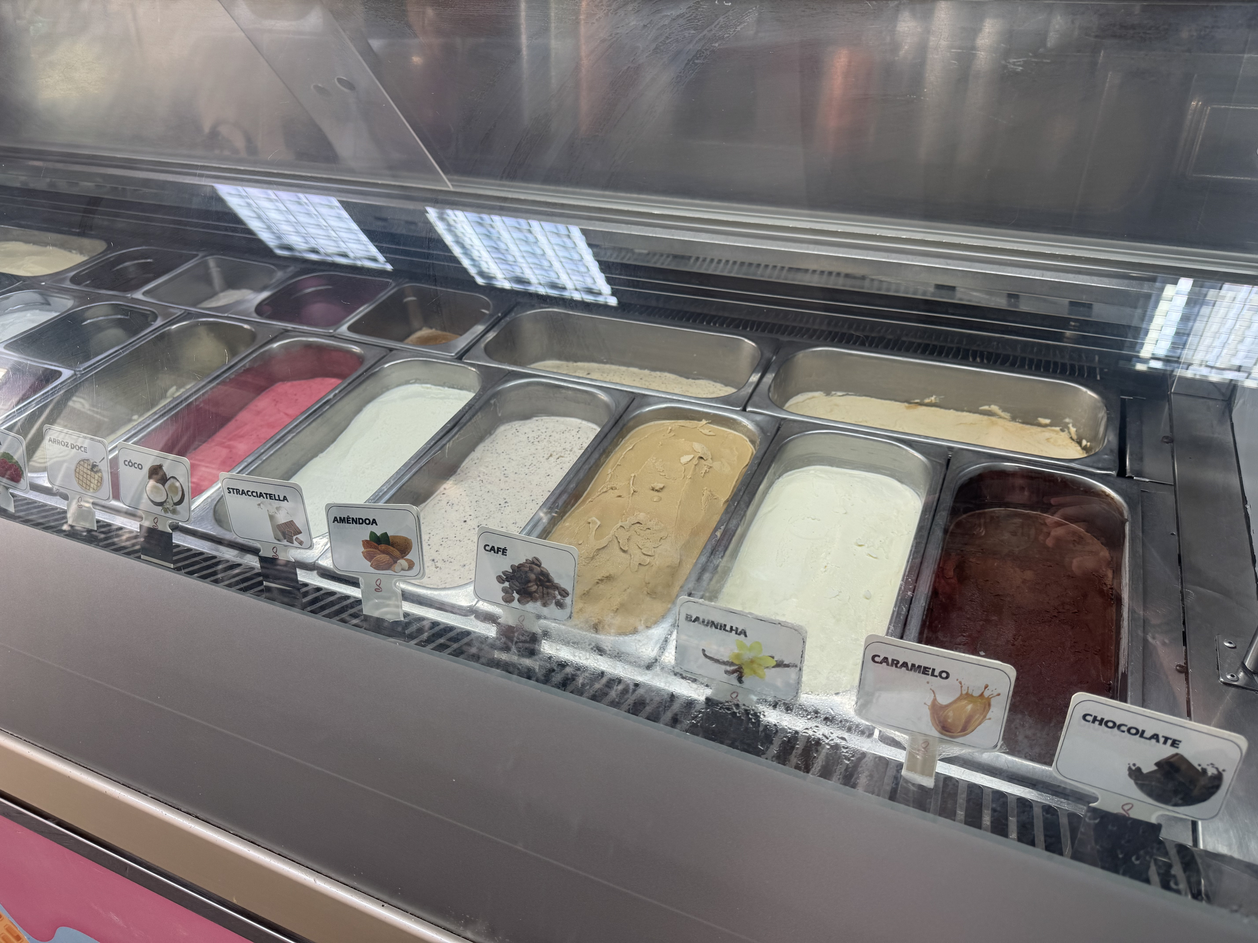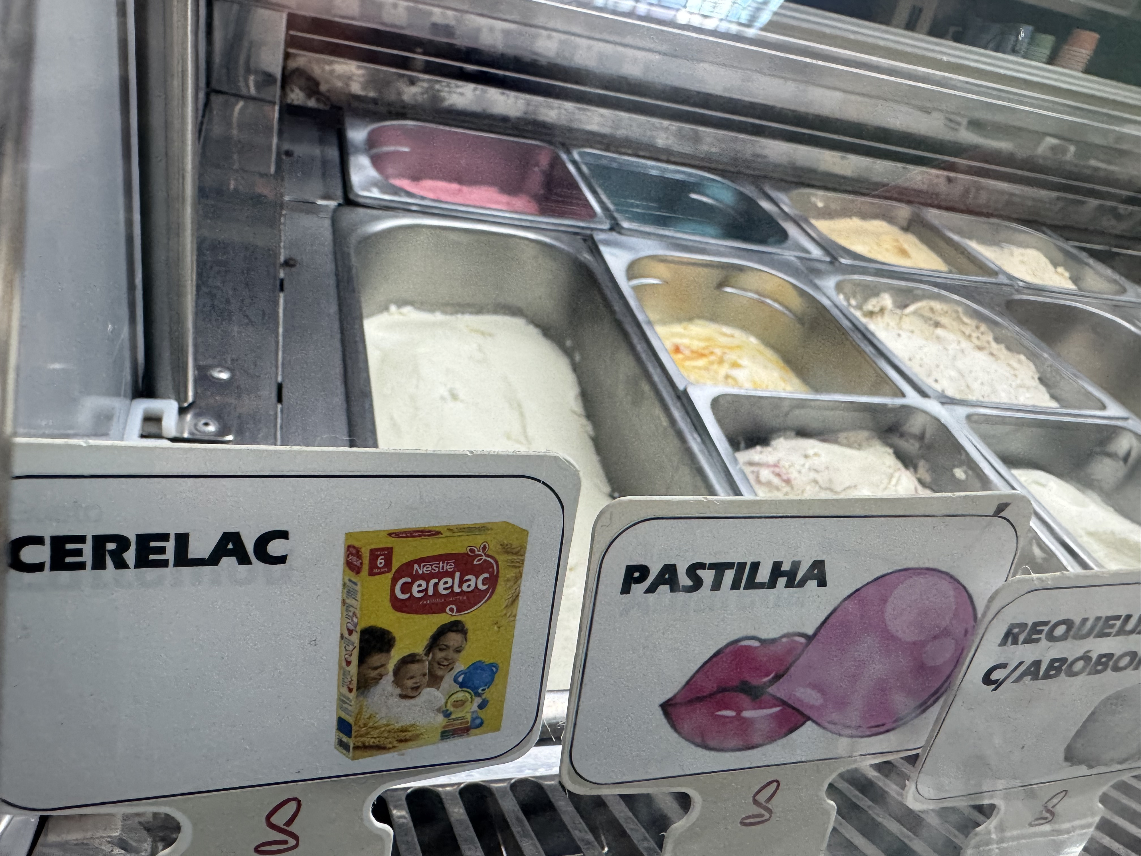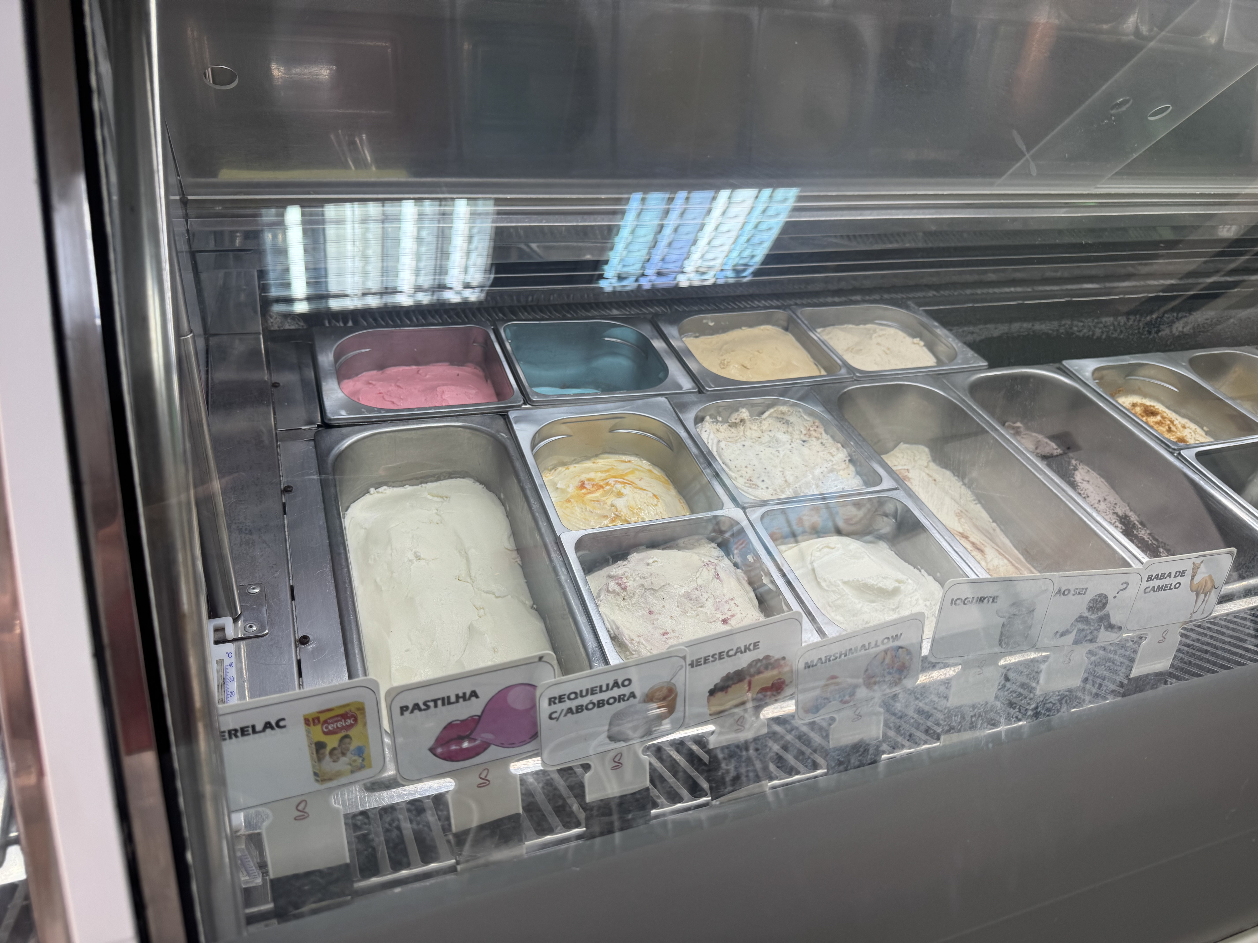 A inovação não para no Dubai. Aqui, a escolha não é fácil para os mais indecisos. Entre os gelados expostos é possível encontrar variedades como gelado de caipirinha, arroz doce, Cerelac — e algo rotulado como "não sei".