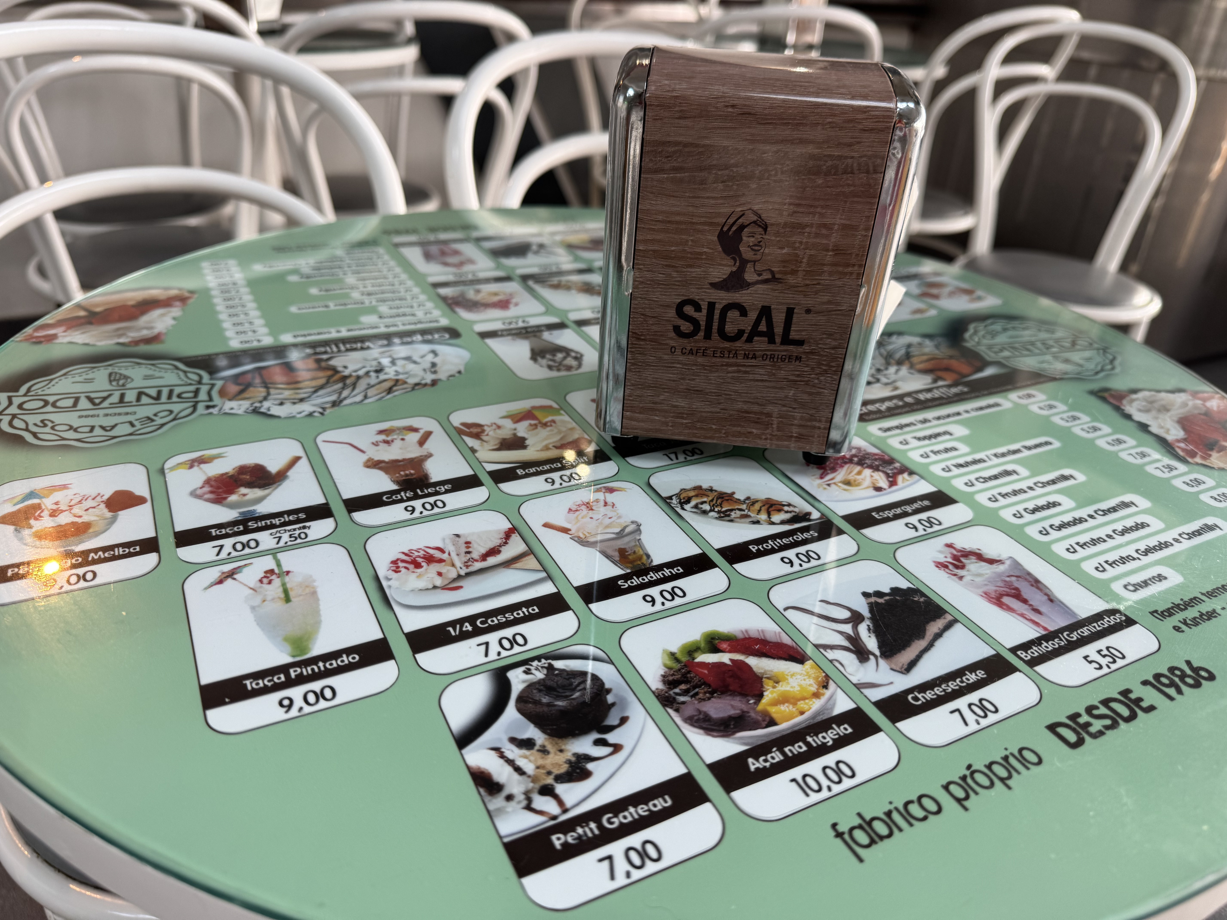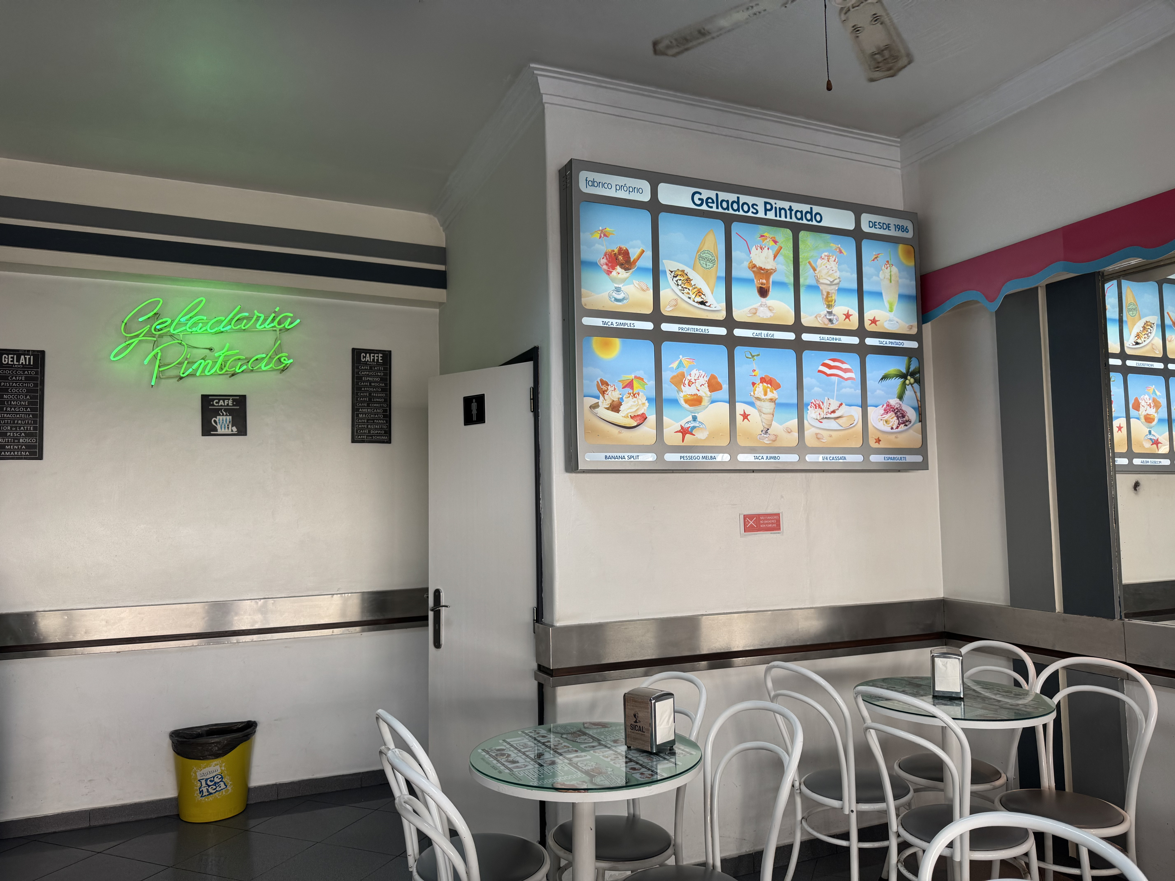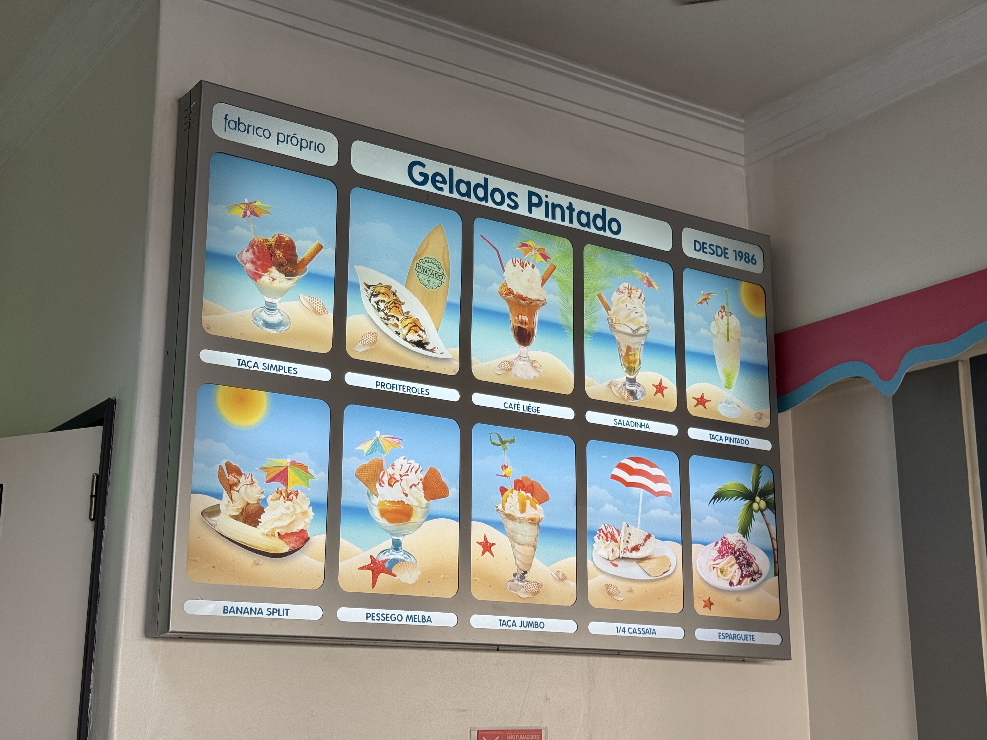 São 10h00 e as portas da icónica Geladaria Pintado, situada na movimentada Rua dos Pescadores, na Costa da Caparica, já estão abertas. Lá dentro, ainda se prepara tudo para o dia soalheiro que se avizinha. Monta-se a esplanada, repõem-se as cubas dos gelados no expositor e organiza-se tudo o resto, desde os copos aos cones.